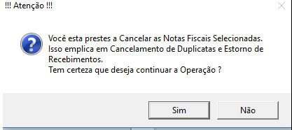 IMPORTANTE: Confirmar se selecionou a nota correta, pois após confirmado o cancelamento não terá como ser revertido.