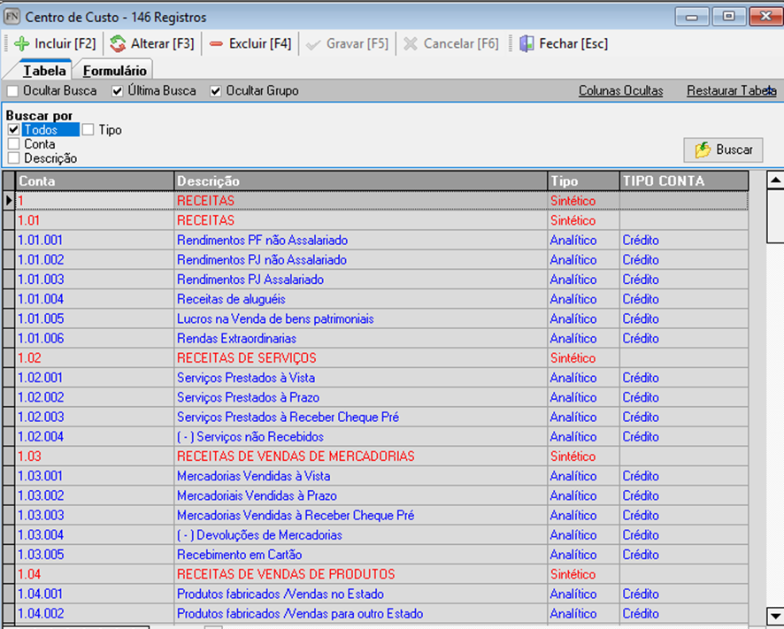 Ao acessar você vai verificar que as contas de receitas iniciam com o código 1 e a de despesa com o código 2. Ao alterar mantenha este critério para que ajude no seu controle de receitas e custos. Poderá ser emitido uma DRE gerencial onde terá informações importantes para fazer um controle de suas receitas e despesas com qualidade, e assim poder tomar decisões e minimizar custos.