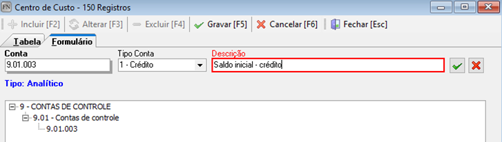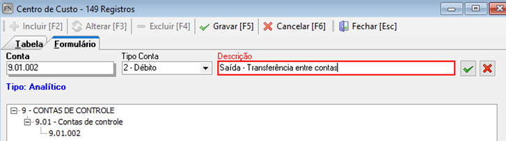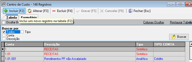OBS: ao optar por utilizar o centro de custos, toda movimentação deve ter sua natureza financeira informada.