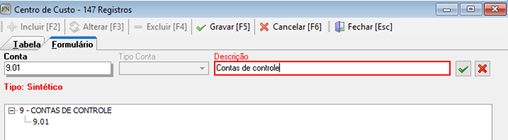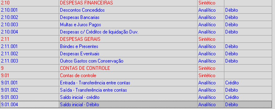 Poderá verificar que ao final de seu plano de contas foi criado as contas explicadas acima: