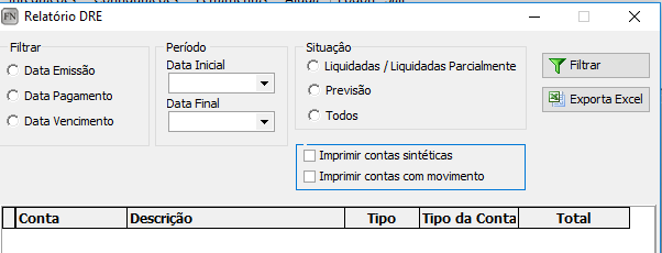 Como emitir um relatório gerencial DRE pela classificação do controle de contas: