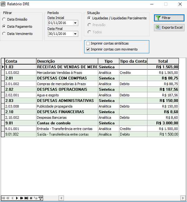 - Como emitir um relatório gerencial DRE pela classificação do controle de contas.